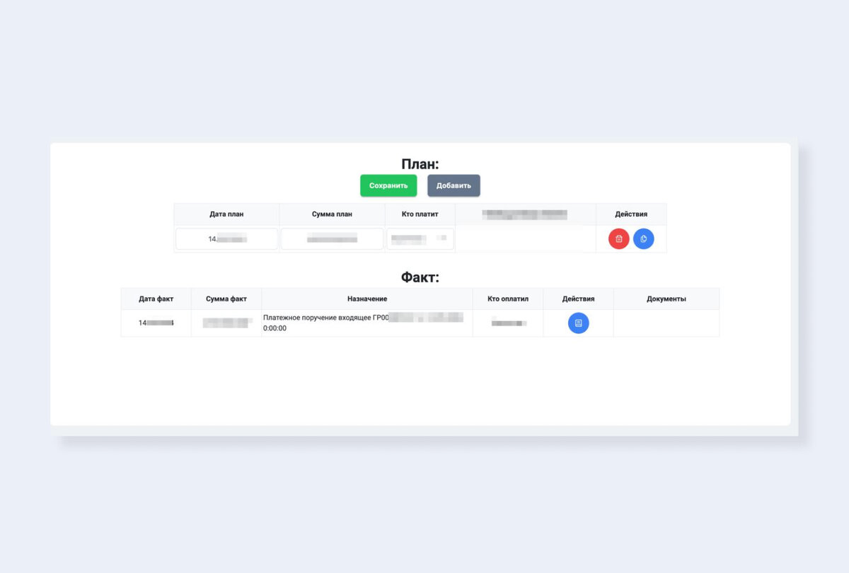 и бухгалтерия. Менеджеры вручную вносили плановые платежи, а бухгалтеры - фактические.